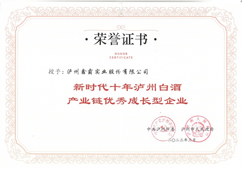瀘州鑫霸實(shí)業(yè)股份有限公司榮獲“新時(shí)代十年瀘州白酒產(chǎn)業(yè)鏈優(yōu)秀成長(zhǎng)型企業(yè)”,集團(tuán)董事長(zhǎng)、黨委書記魏云飛出席授牌儀式。